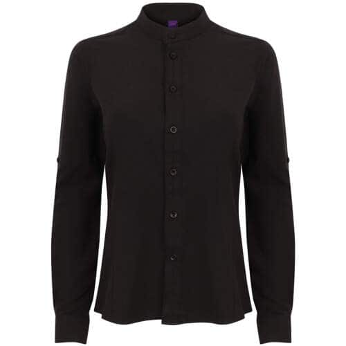 Ladies` Mandarin Shirt Roll Tab Sleeve