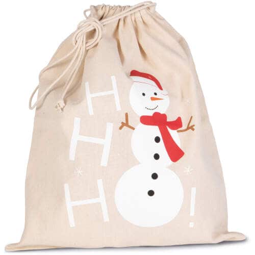 Baumwolltasche mit Kordelzug und Schneemannmotiv - Natural