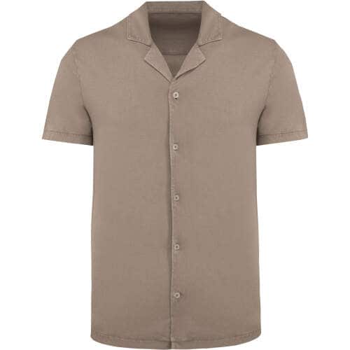 Umweltfreundliches ausgewaschenes Jersey-Herrenhemd mit kurzen Ärmeln und Bowling-Kragen